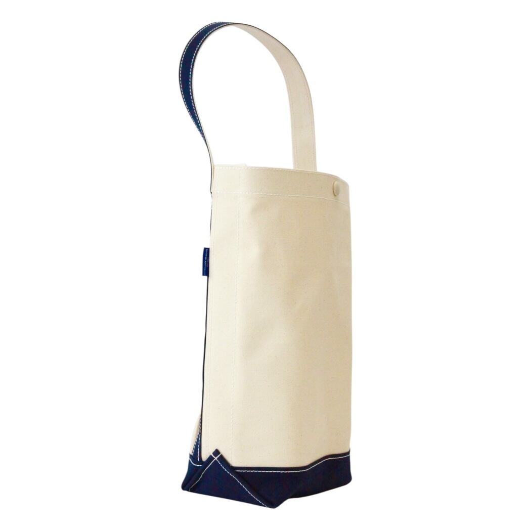 こちらのトートバッグは、SEASAWオリジナルの帆布を使用した、ワンハンドルの縦型デザインが特徴のアイテムです。外ポケットと開口部には、上品な革のくるみボタンを使用し、ディテールにもこだわりを詰め込みました。