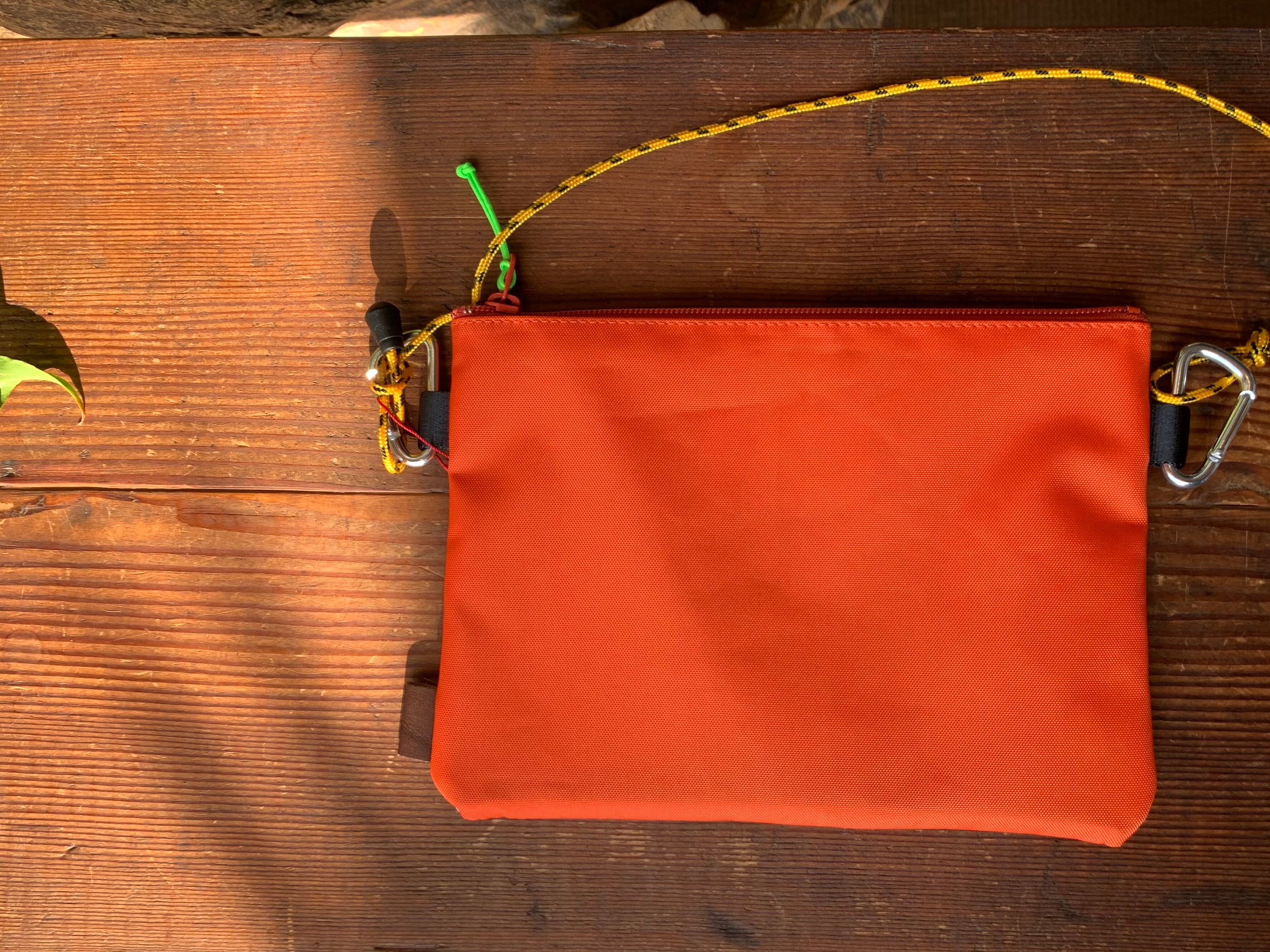 OBI sacoche is made by combination of modern sense and classic material. Used silk sash or antique sash is selected by designer and these classic fabric is mixed with nylon material. Translucent Cordura nylon is used as a material of front pocket, which also help to protect the silk fabric.