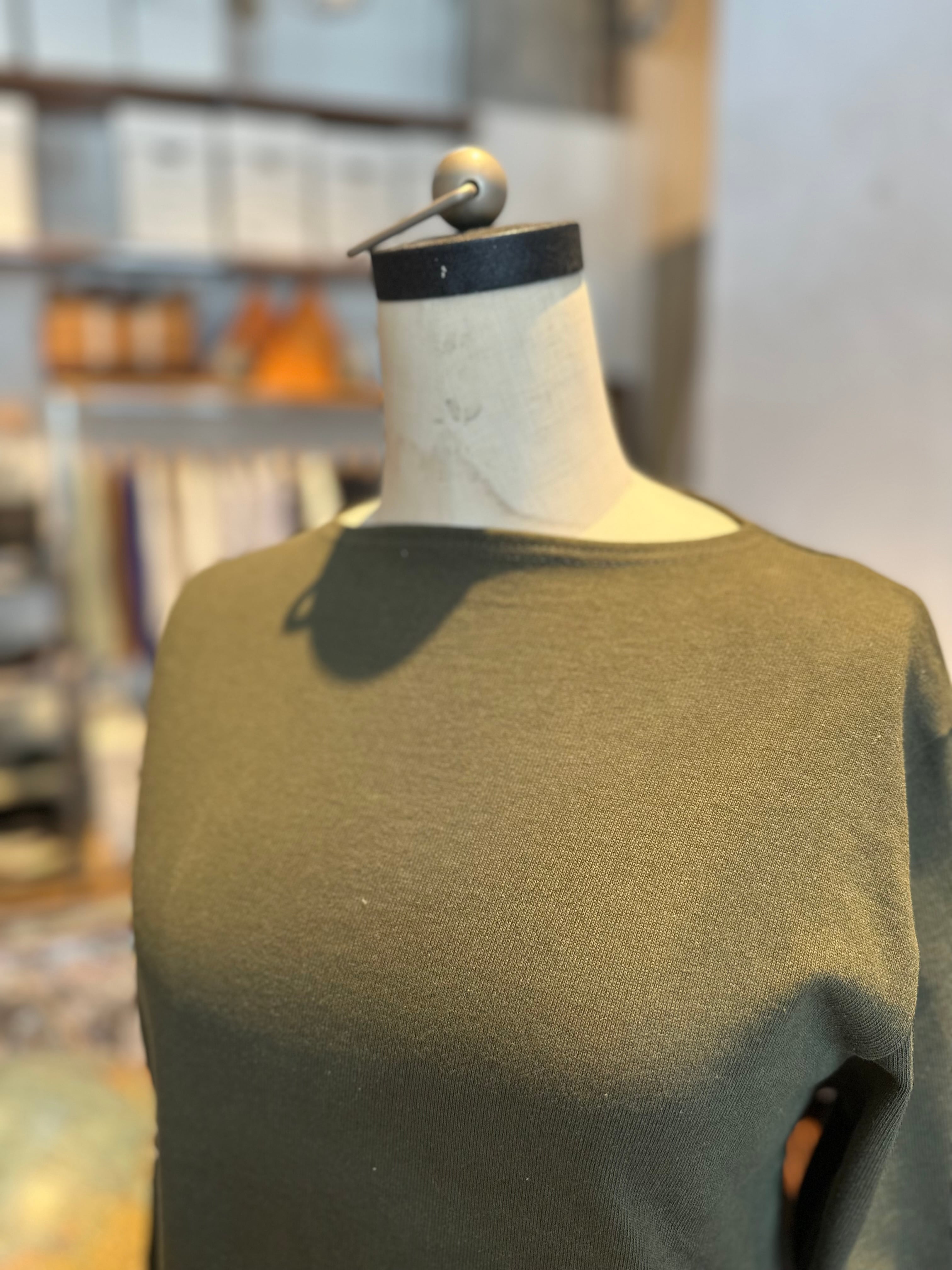 機能的にもすぐれ、一段とスポーティーなアクセントになっています。ボートネック、長袖のシャツの原型はノルマンディー地方の漁師やヨットマン等の船乗り達が着ていたもの。実用的に考えられた素材、スタイルが特徴です。
