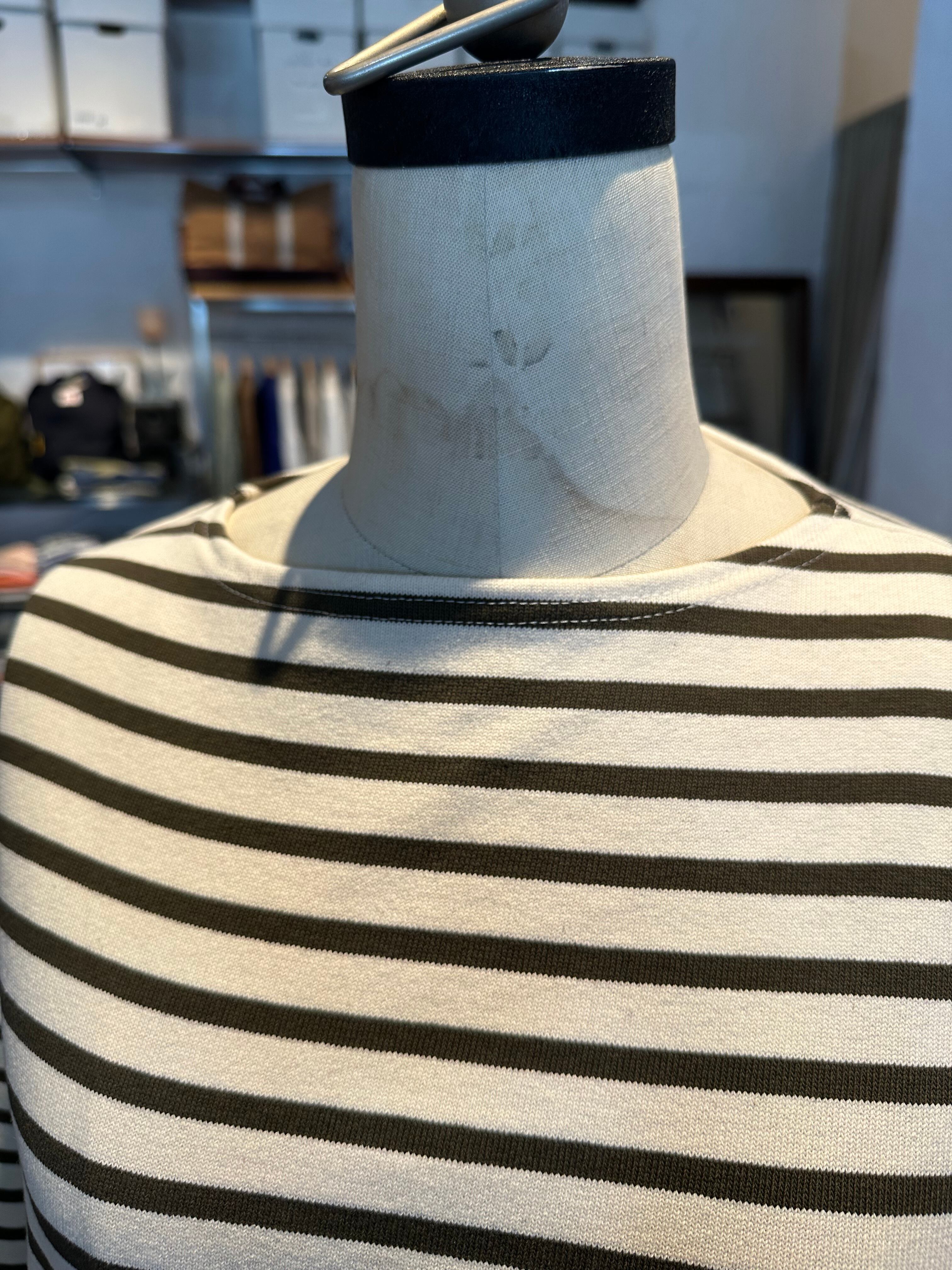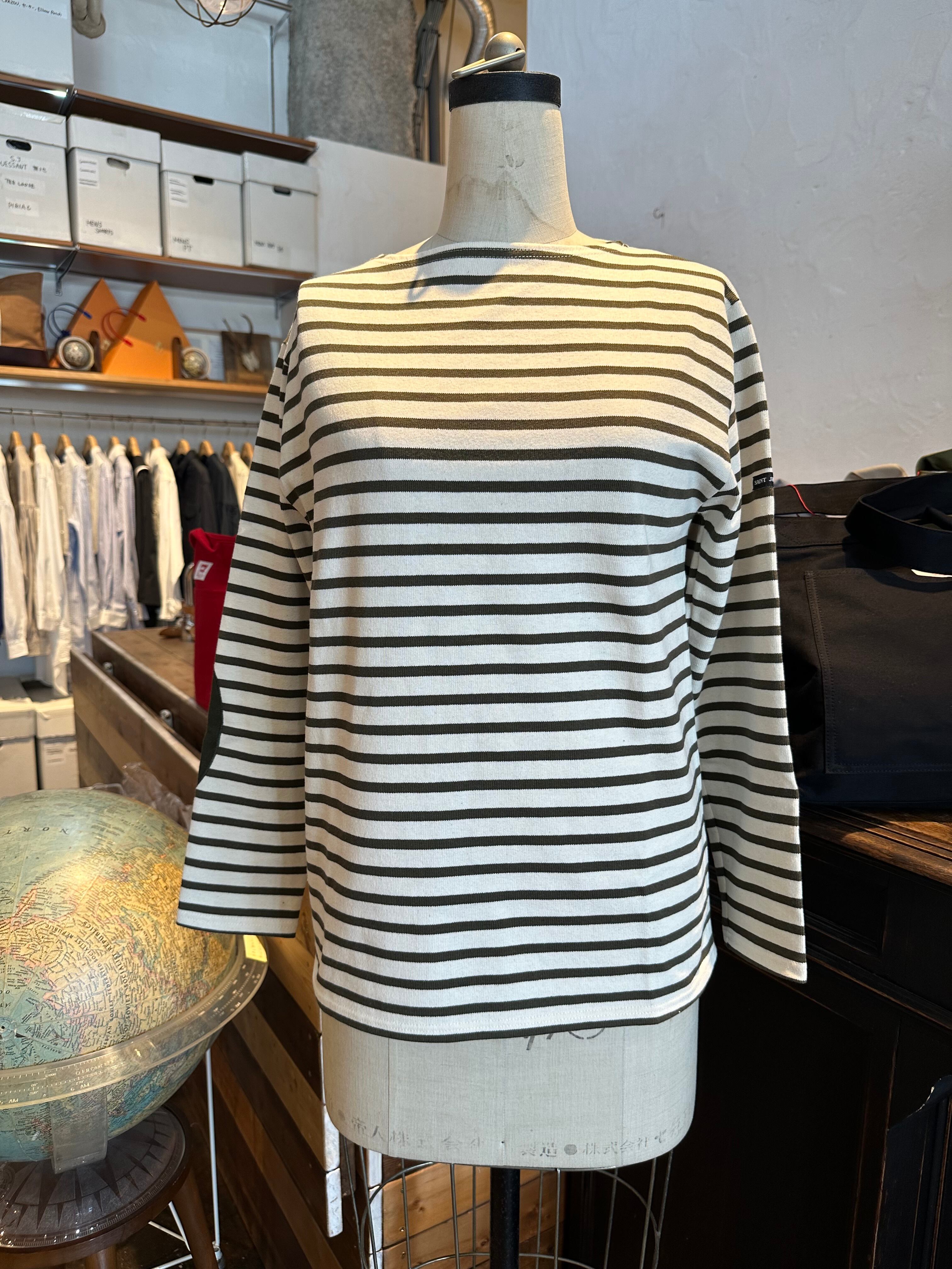 機能的にもすぐれ、一段とスポーティーなアクセントになっています。ボートネック、長袖のシャツの原型はノルマンディー地方の漁師やヨットマン等の船乗り達が着ていたもの。実用的に考えられた素材、スタイルが特徴です。