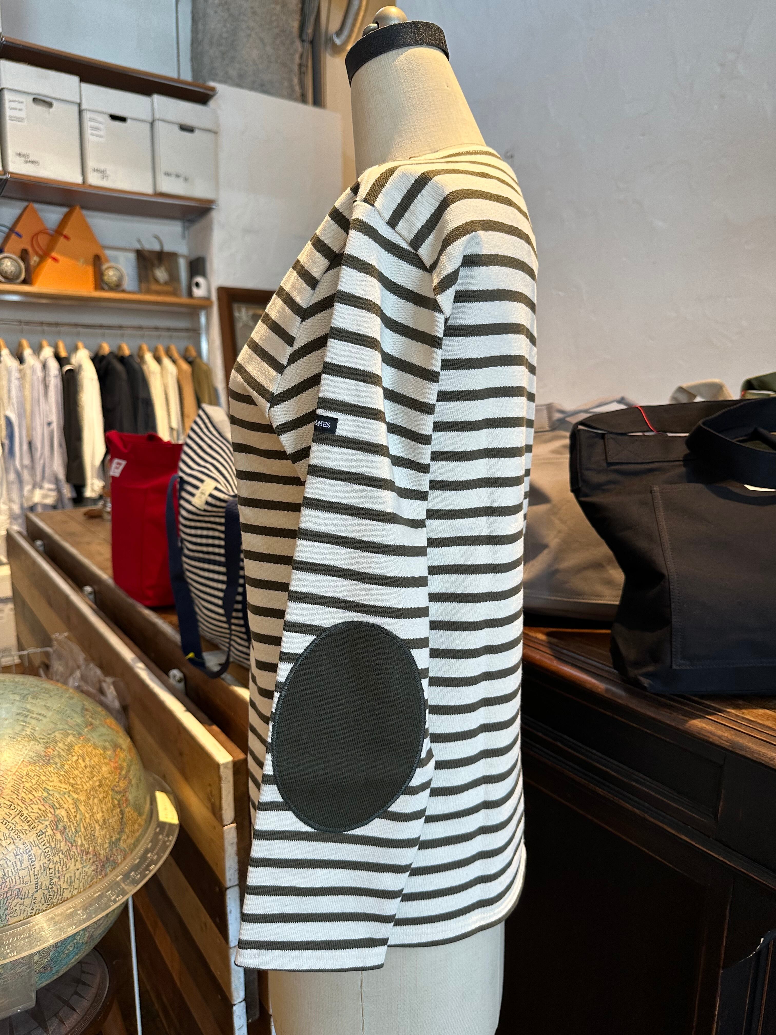 セントジェームスのシャツの定番中の定番に、同素材のヒジあてパッチがついています。
