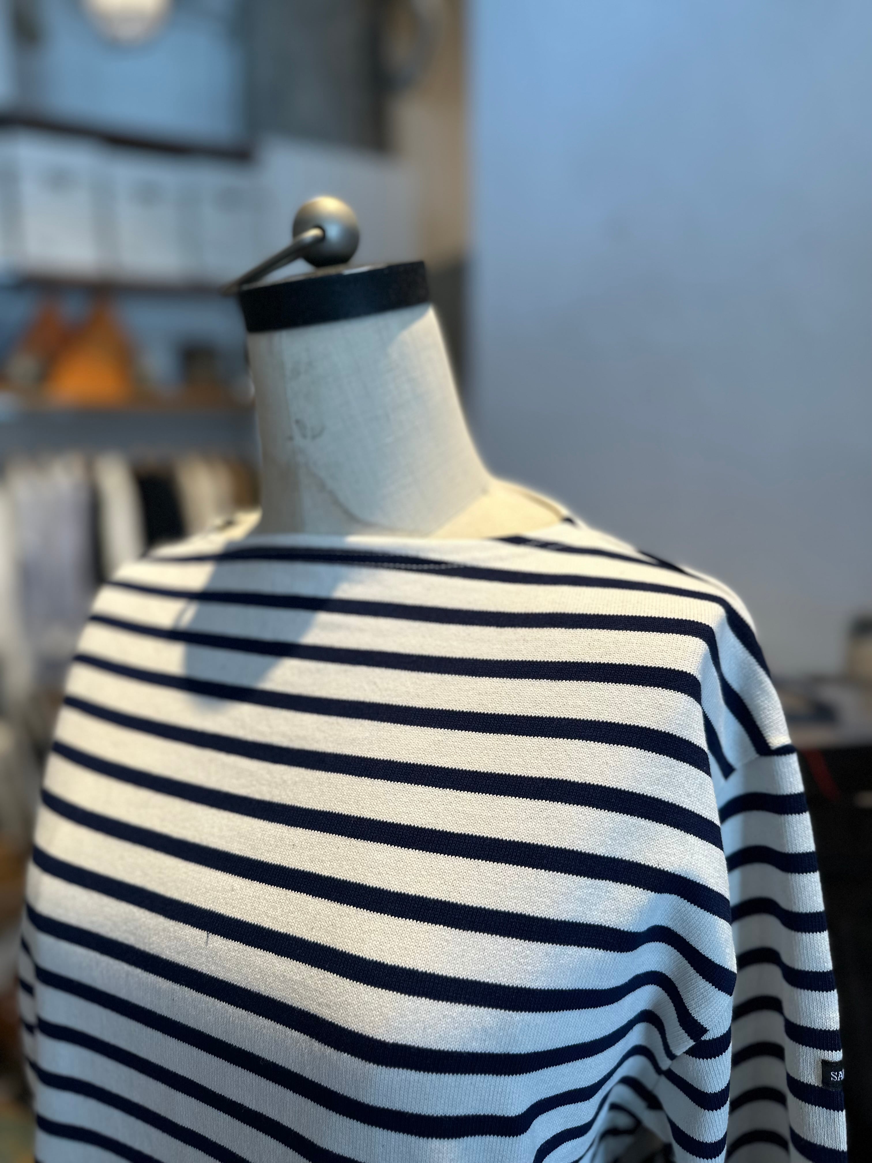機能的にもすぐれ、一段とスポーティーなアクセントになっています。ボートネック、長袖のシャツの原型はノルマンディー地方の漁師やヨットマン等の船乗り達が着ていたもの。実用的に考えられた素材、スタイルが特徴です。