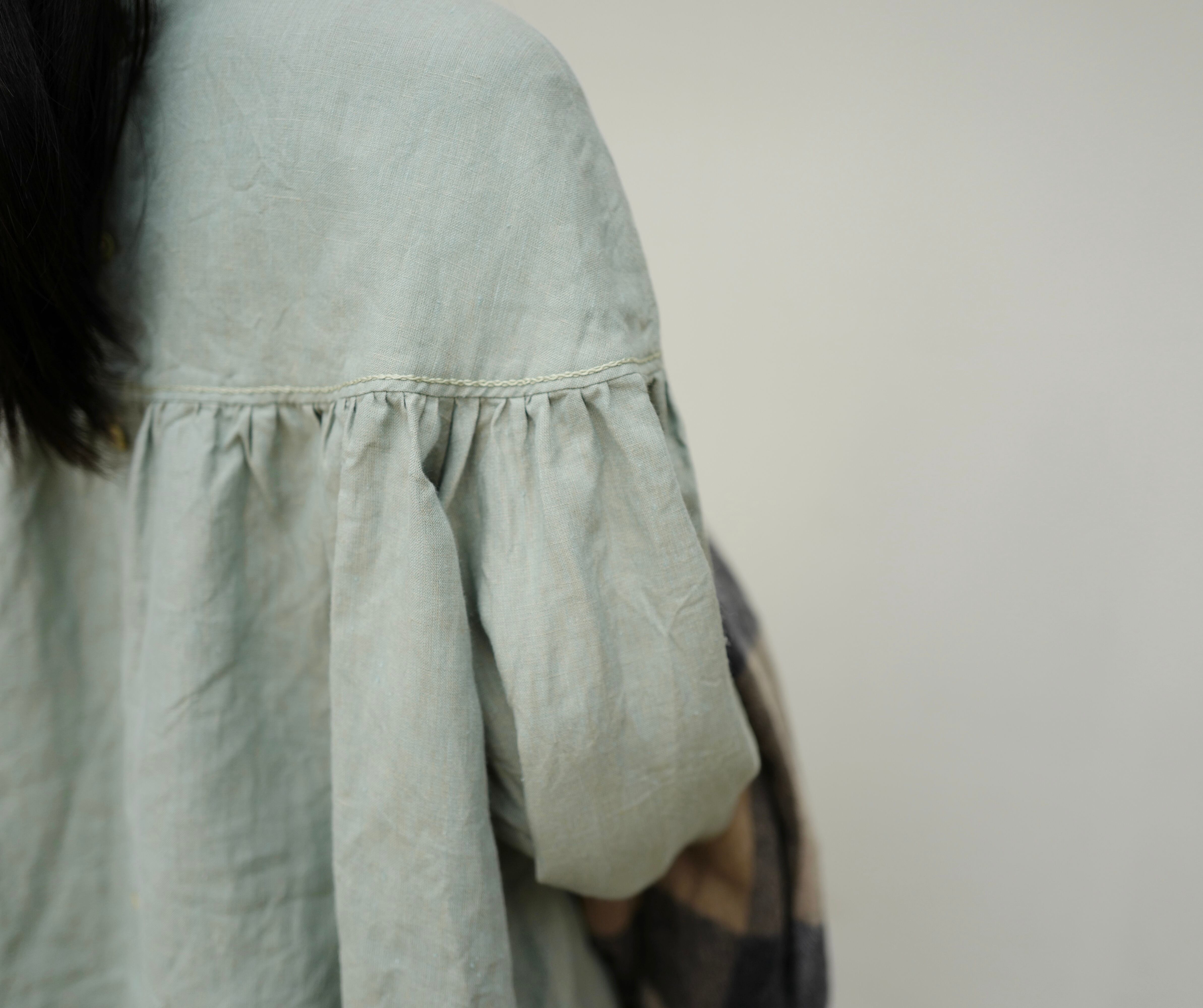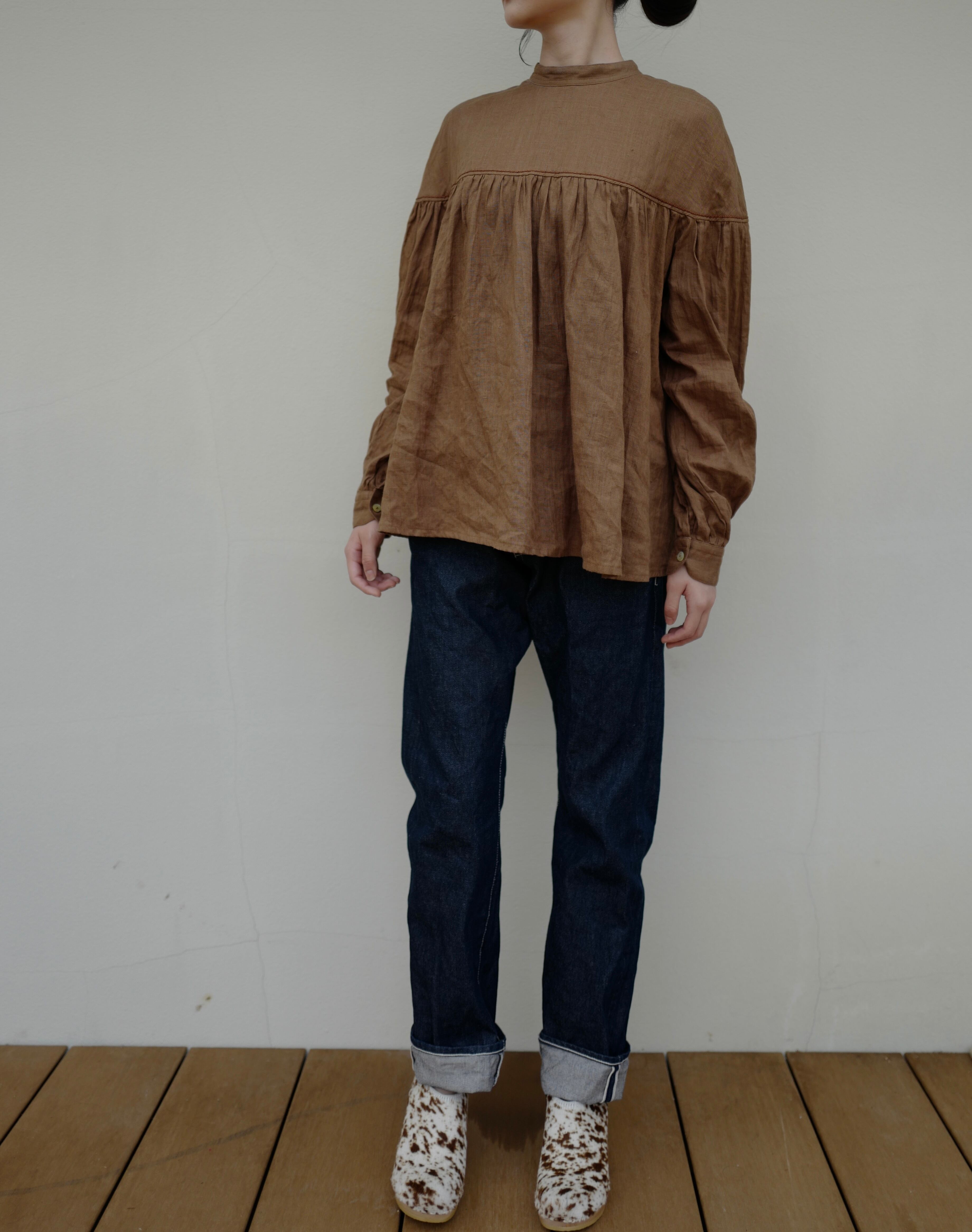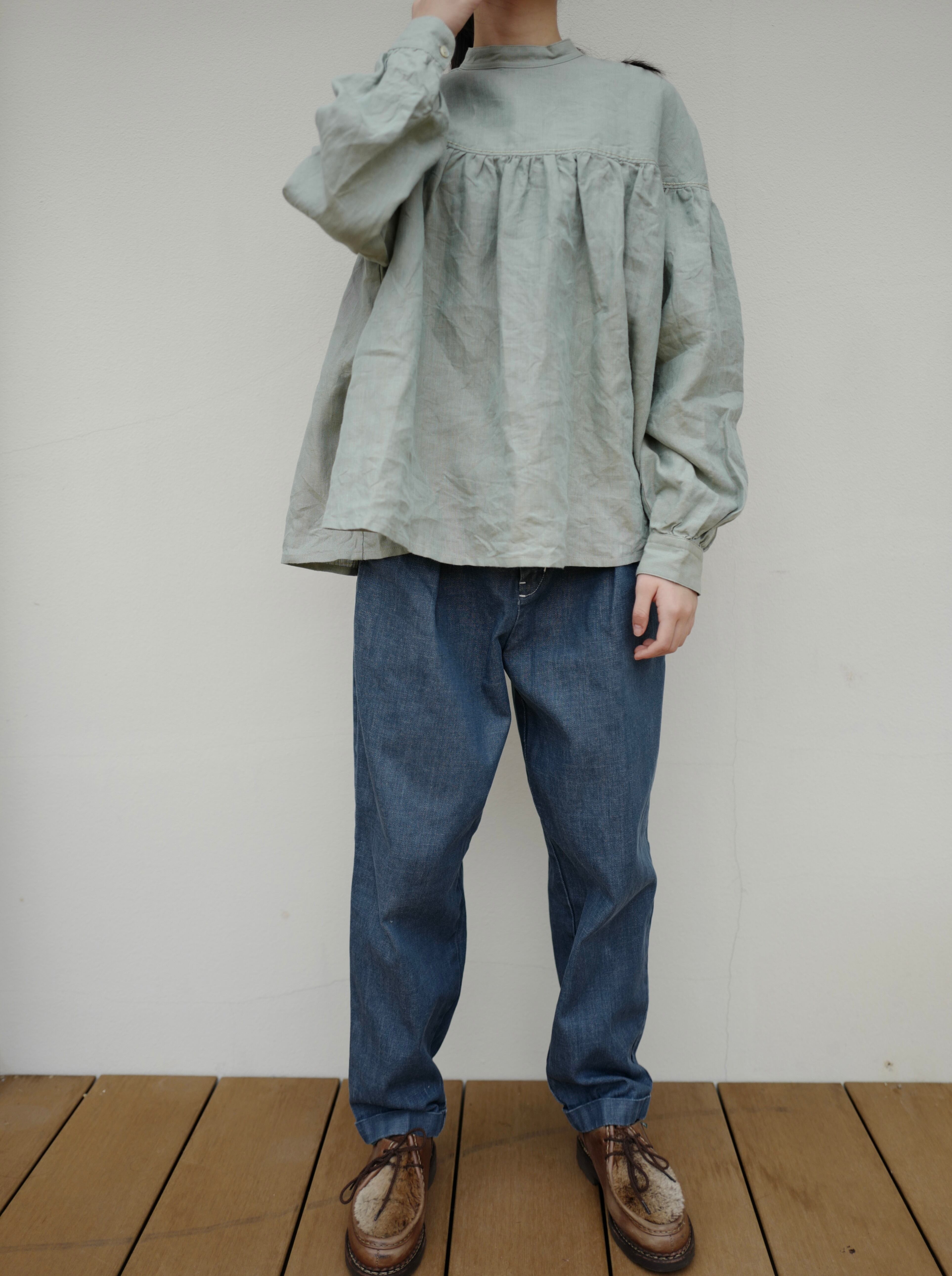 ゆったりサイズ感で、しっかりしたリネン素材を使用してます。
