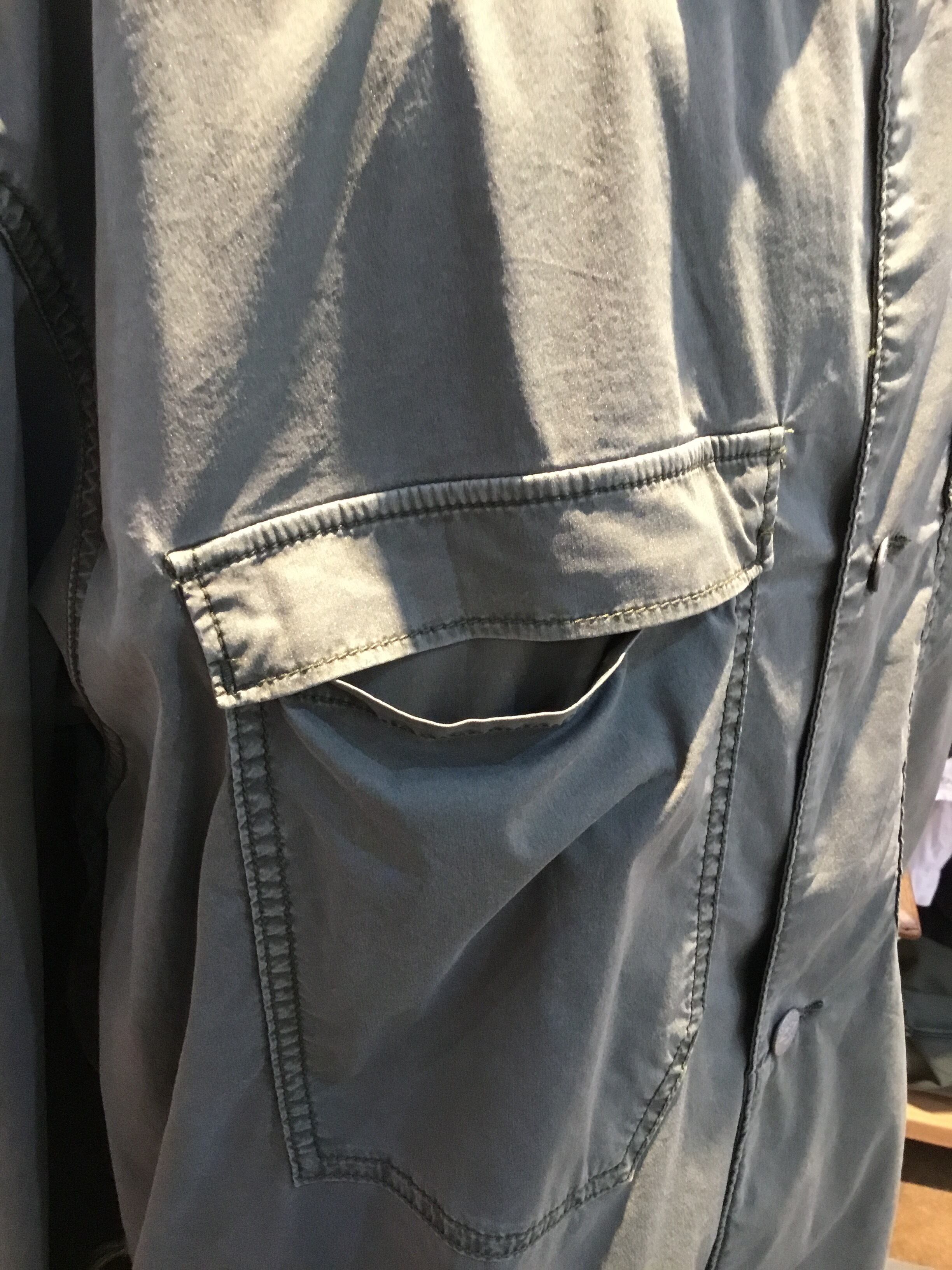 ストーンマスターの代表作「ハイブリッドシリーズ」に新しい仲間が誕生。オーバーサイズのフィールドシャツ。チェストポケットは創業者マイク・グラハムのハンドデッサンで作られた形。左ポケットにはギザギザステッチのアイコンが刺繍されています。ジッパーポケットにパッカブル収納可能。裾にはドローコードが付いており、風の侵入を防いだり、丈の長さを調整する事ができます。