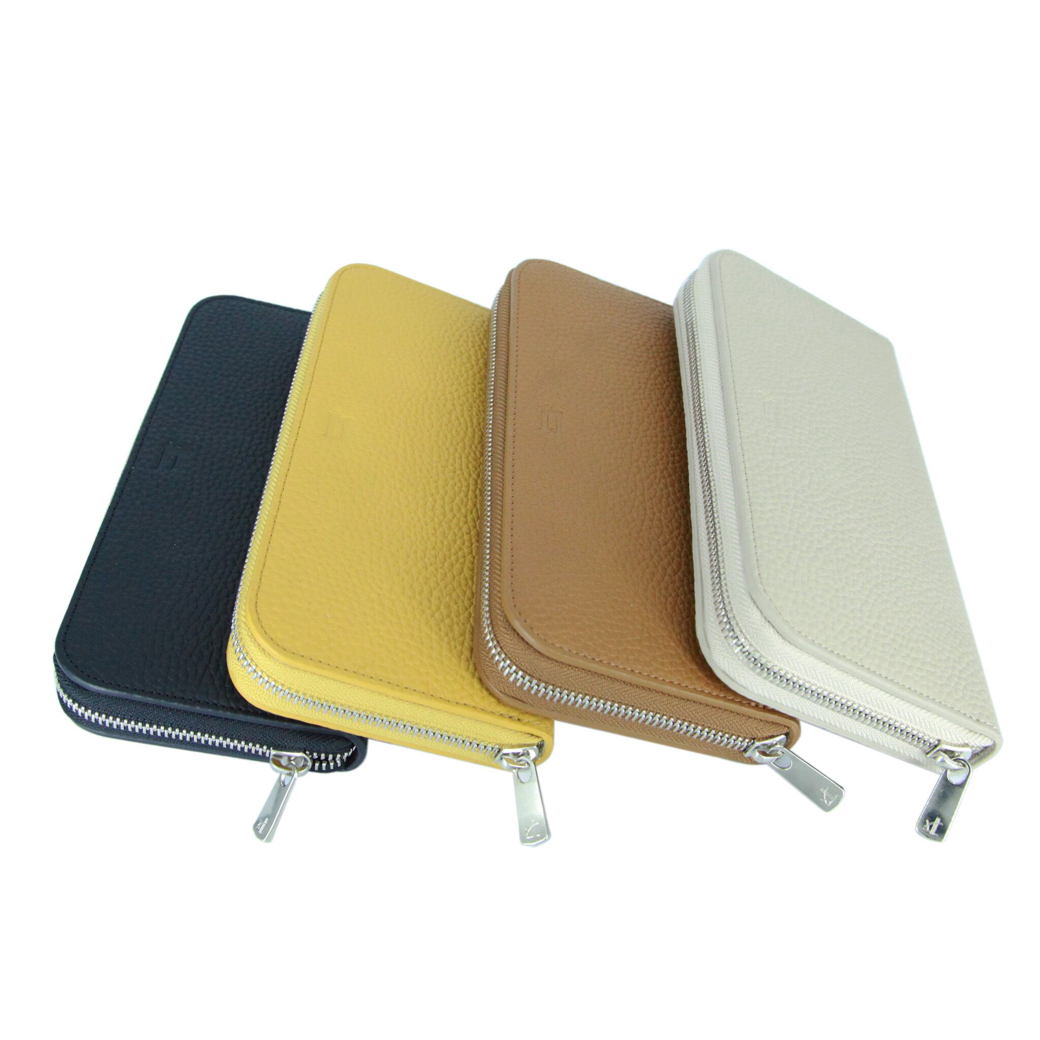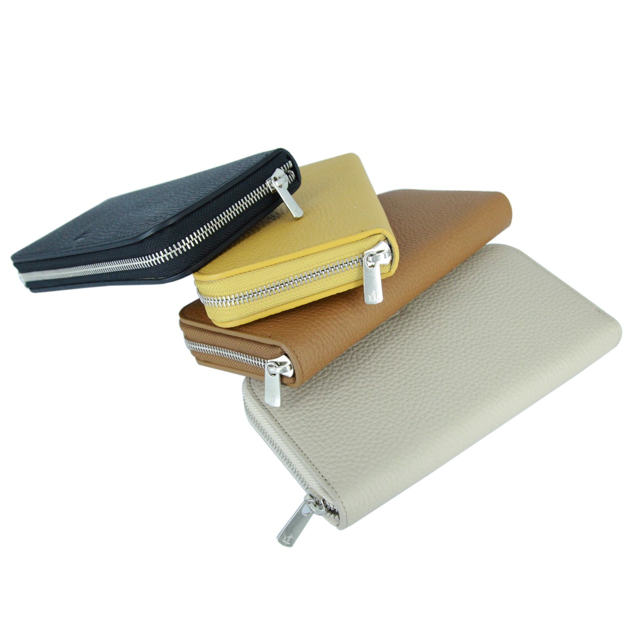 洗練されたデザインと機能性を兼ね備えた『Round Zipper Wallet』は、交野カバンの定番アイテム。ユニセックスに使えるよう、カラーバリエーションも豊富に取り揃えています。シンプルでありながら、存在感を放つこの長財布は、普段使いはもちろん、贈り物にも最適です。