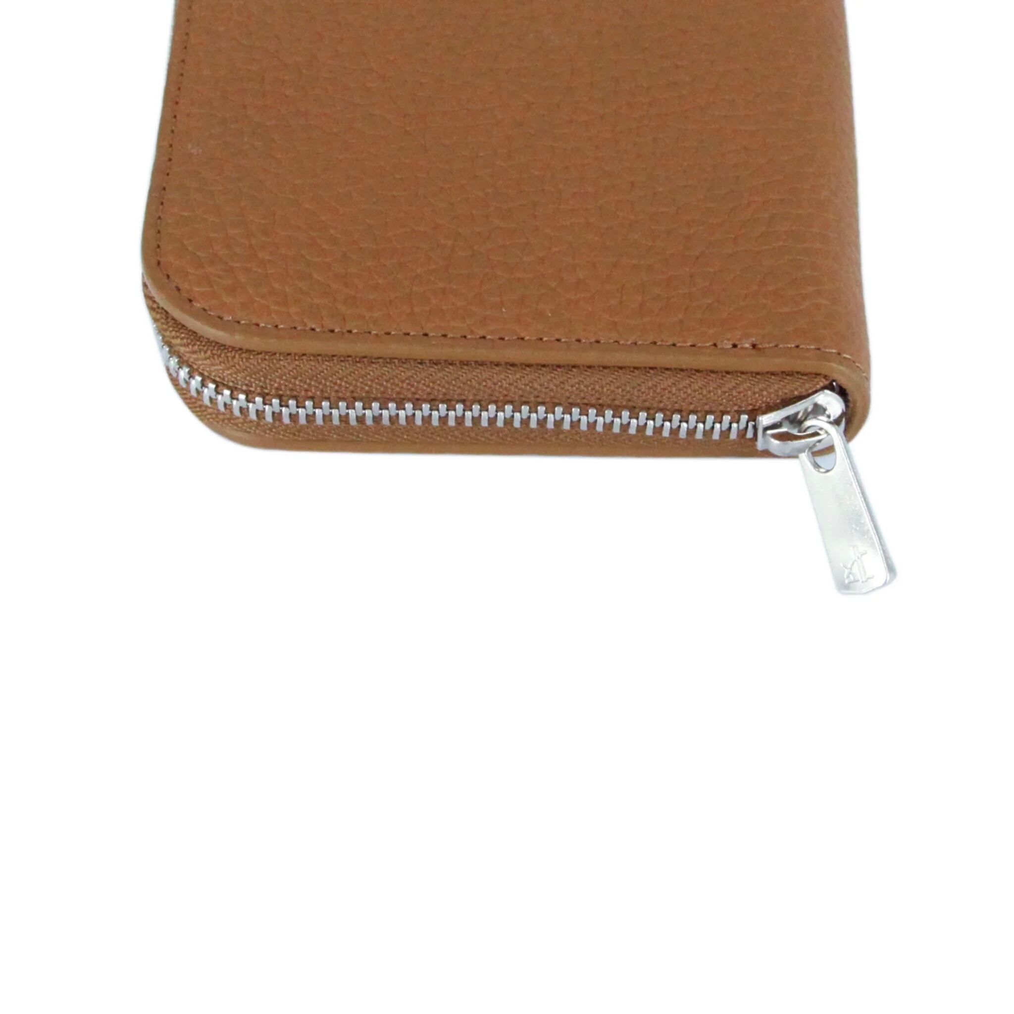 The wallet also boasts a premium YKK Excella zipper, whose gleaming elements contrast beautifully with the leather, enhancing the overall aesthetic. The meticulous attention to detail adds an extra touch of luxury to the design.