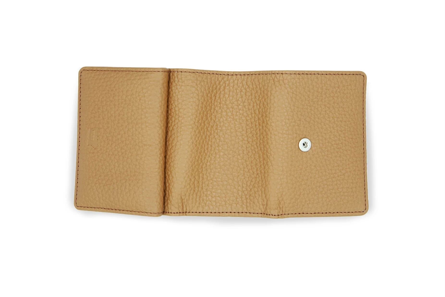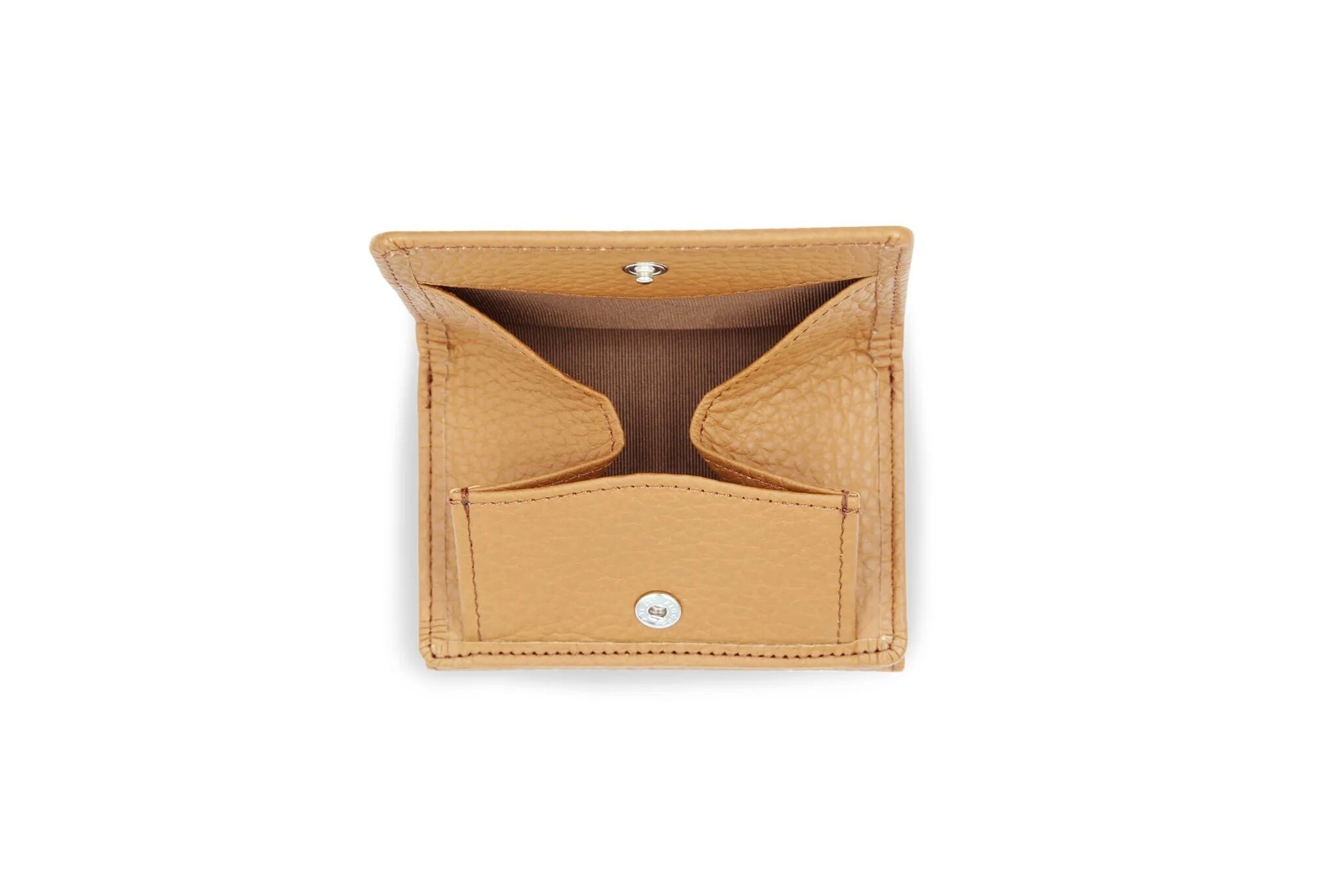 It neatly holds bills, coins, and cards—perfect for carrying just what you need, all in the palm of your hand.