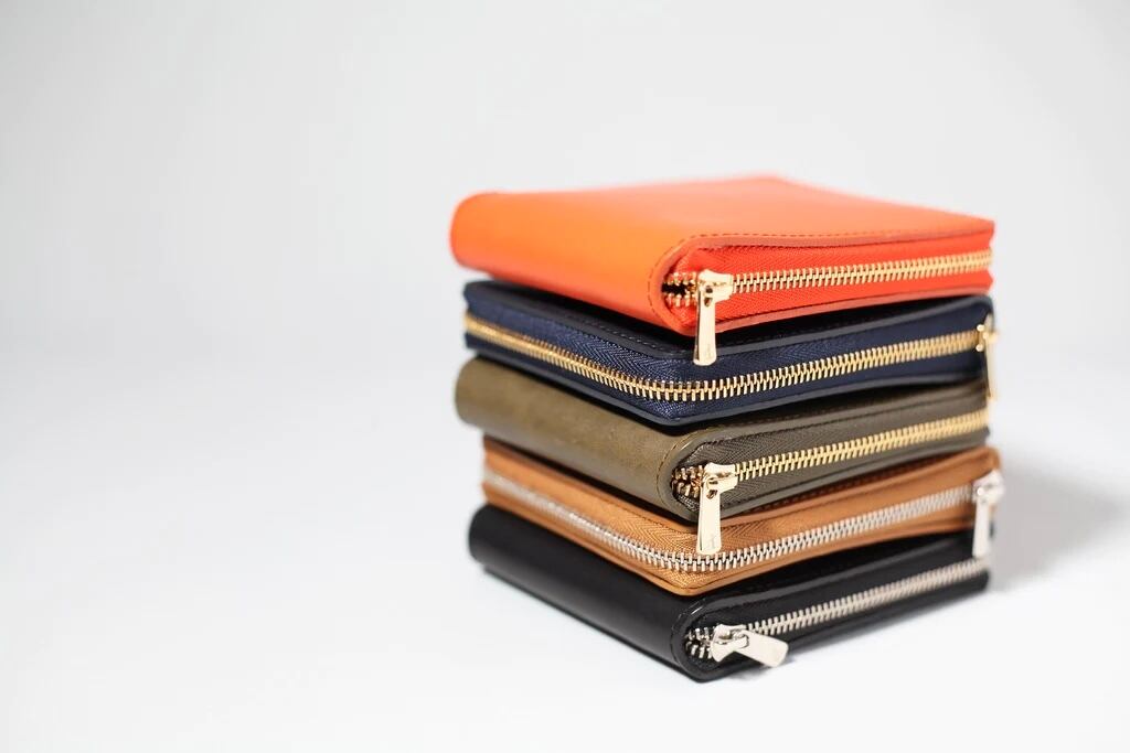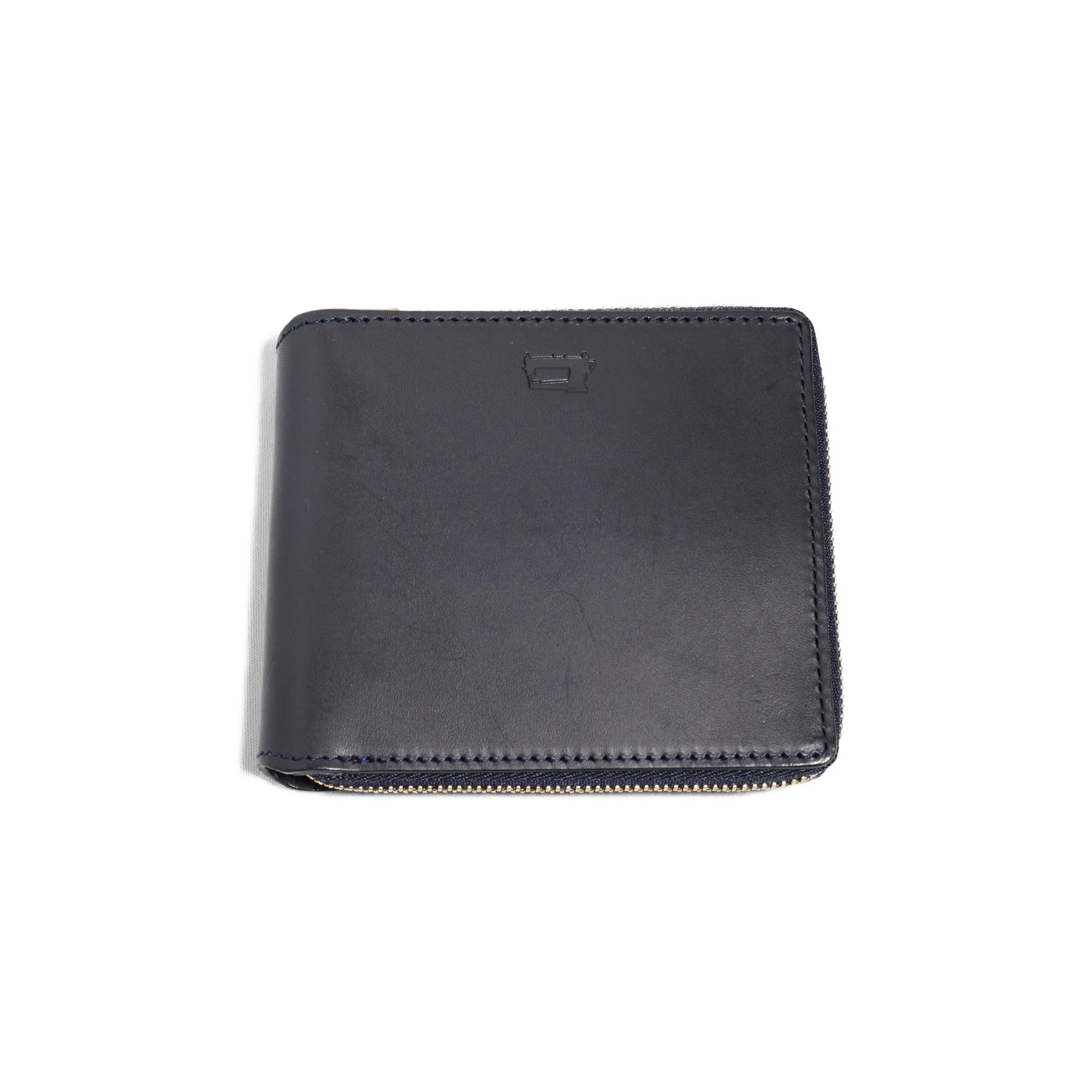 コンパクトで使いやすい、コの字型ファスナーの二つ折り財布。
