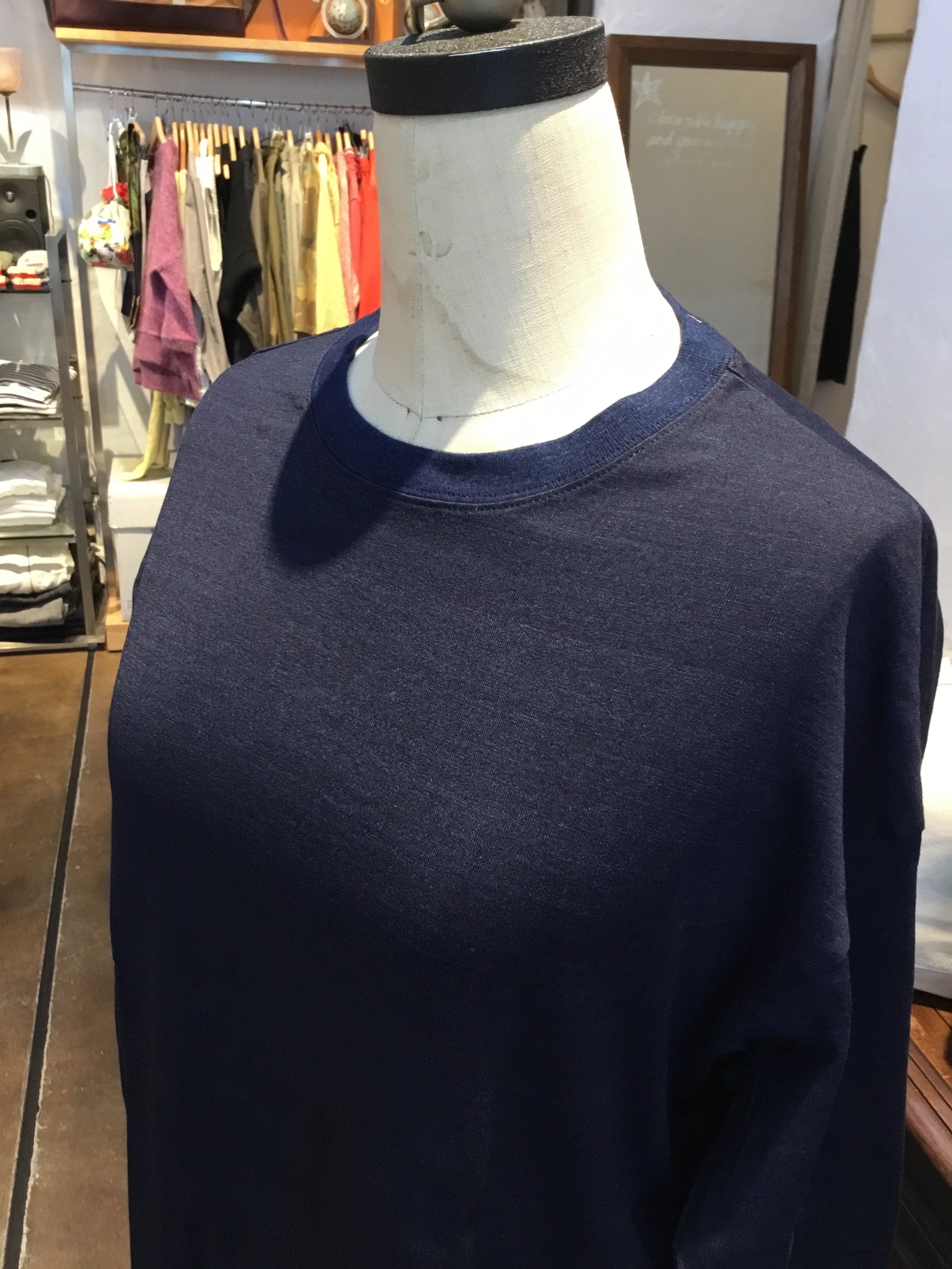 藍染を施した長袖のTシャツは、色落ちを楽しみながら着て頂けます。