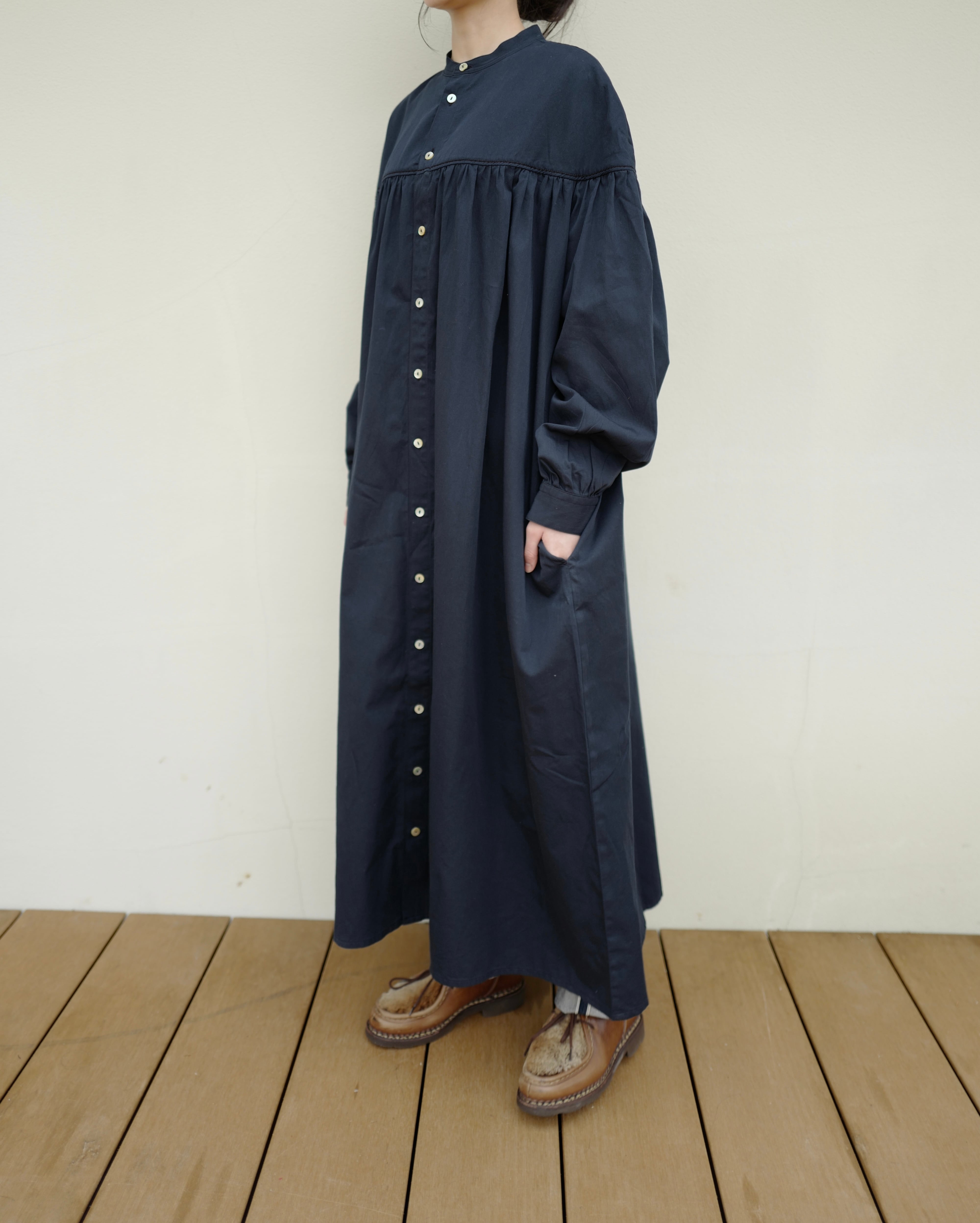 ギャザーがたっぷり入ったシャツワンピース
