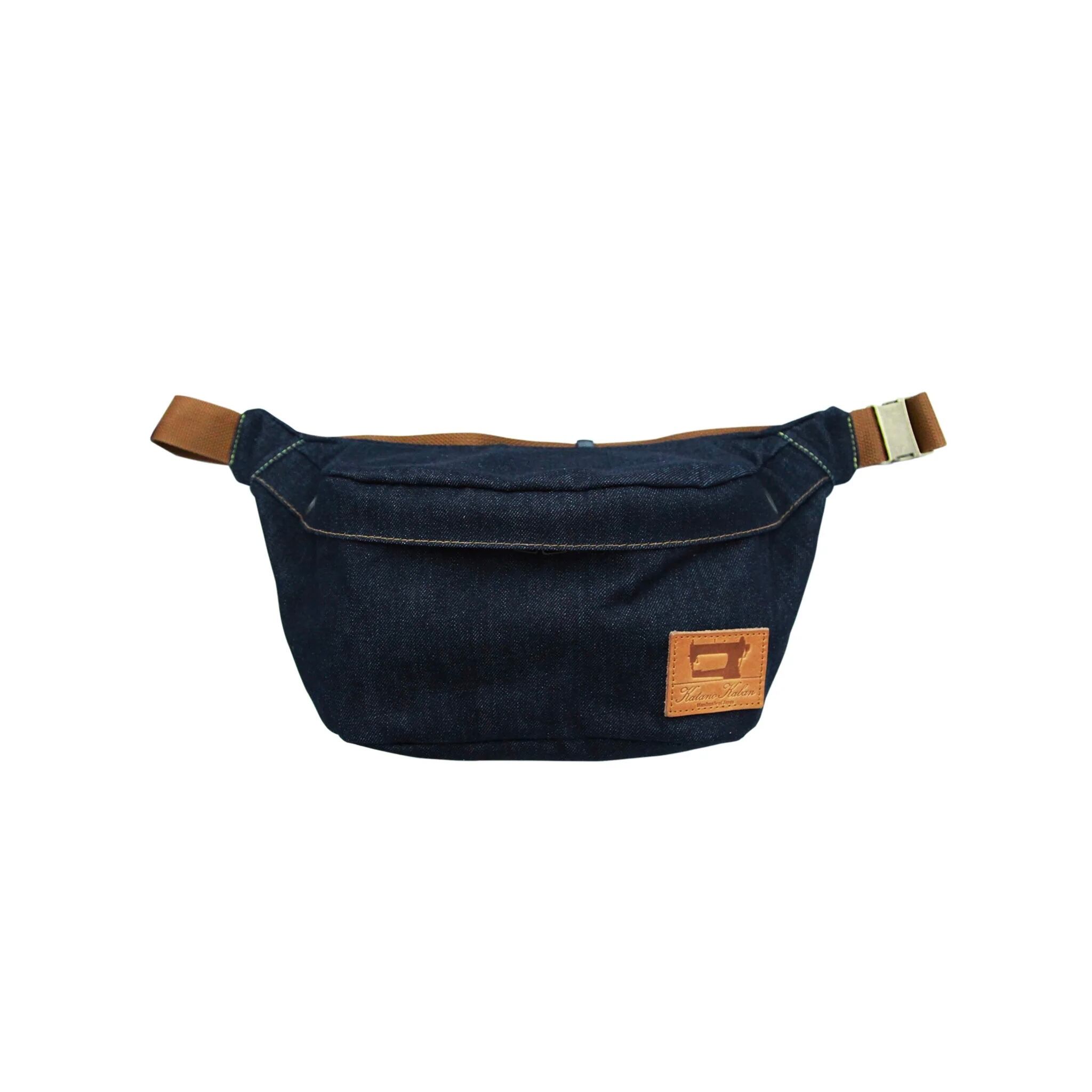 Black Denim: シックでスタイリッシュな黒デニム。全体を黒糸で縫製し、シンプルさを追求した大人のためのウェストバッグ。