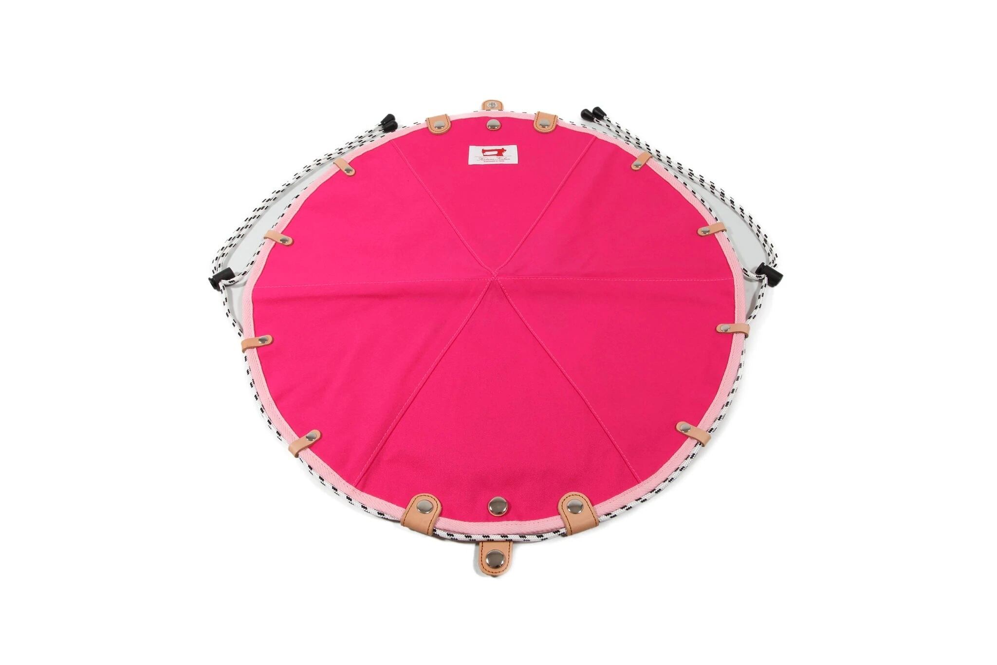 ロープを緩めれば直径50cmの円形マットに、引っ張るだけで立体的なバッグに変形。特許取得済みの構造により、敷物としても、サブバッグとしても使える多機能なアイテムです。