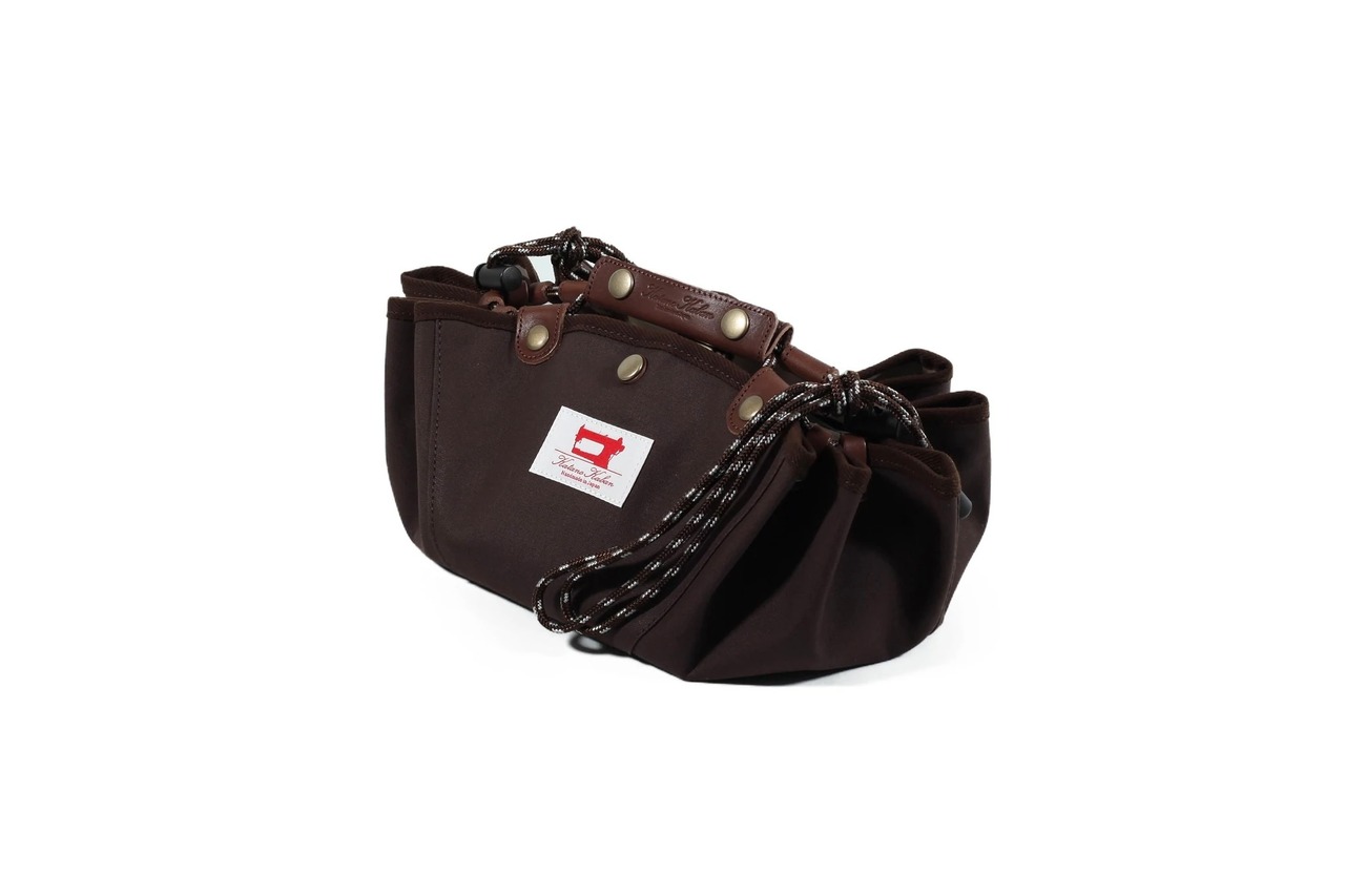 Crafted with a durable cotton canvas exterior and a waterproof nylon interior, the bag is reversible, so you can switch between textures depending on your mood or the weather.