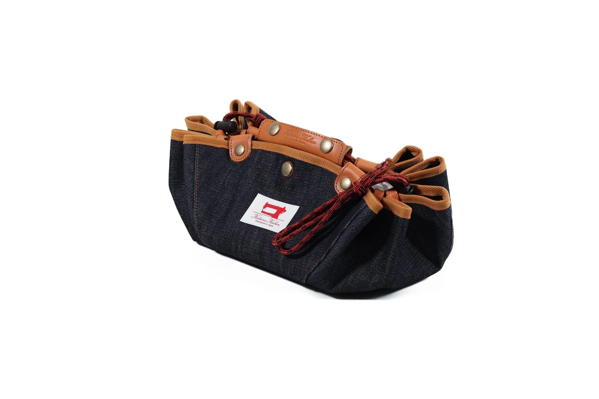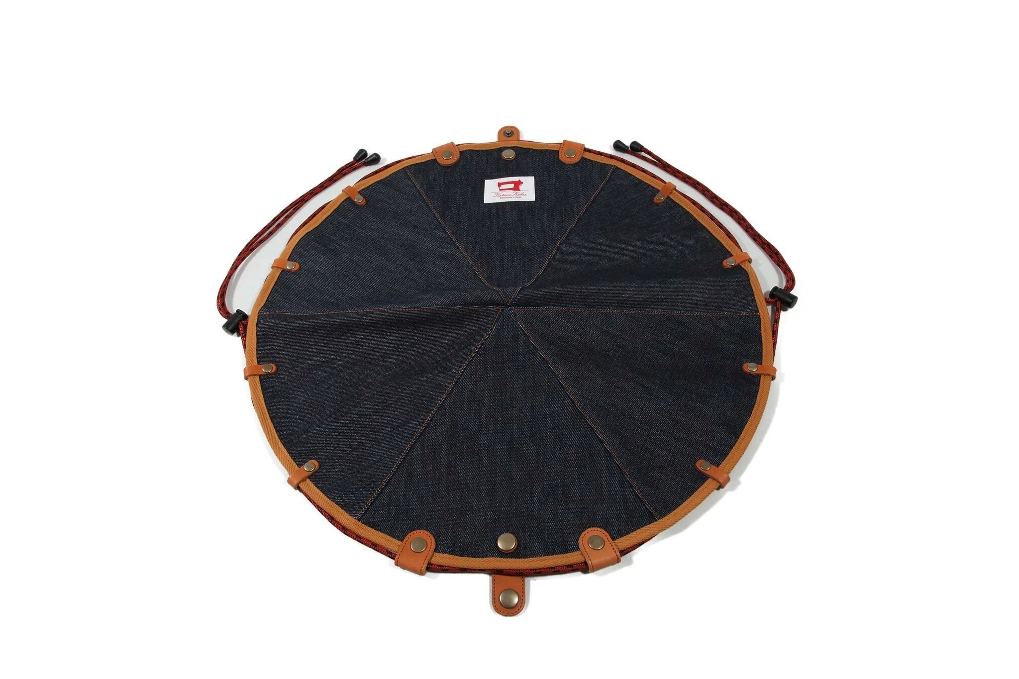 折り畳むとコンパクトになるので、サブバッグとして、また展開したフラットな状態では敷物としてご利用頂けます。持ち手には牛ヌメ革を使用し、細部のディティールに至るまでこだわった一品です。ユニークなビジュアルと、用途のアレンジの多さ、アイキャッチで尚且つ機能性にも優れたバッグです。