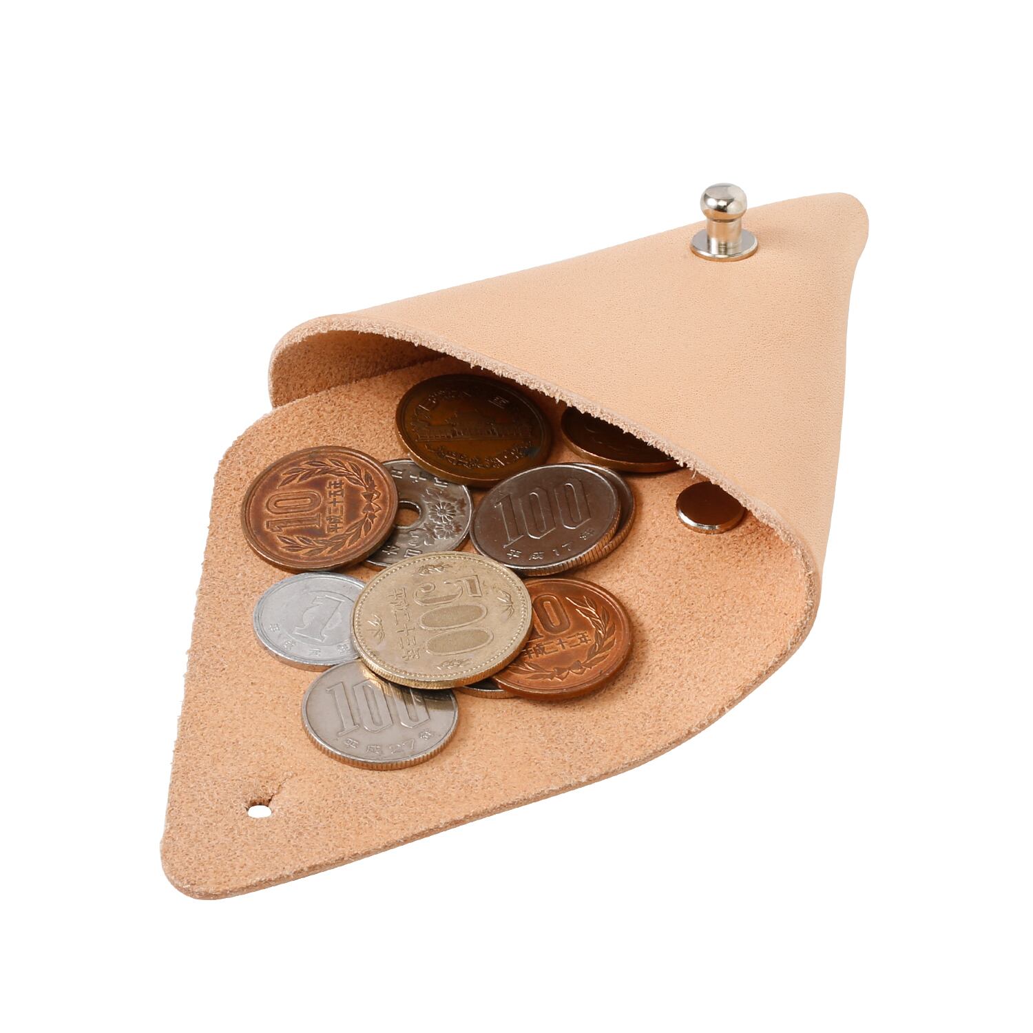 As it has unique triangle shape, it can be opened and closed from both of front and back side.It is not only used as coin case but is able to be used as multi-purpose case like accessary case.
