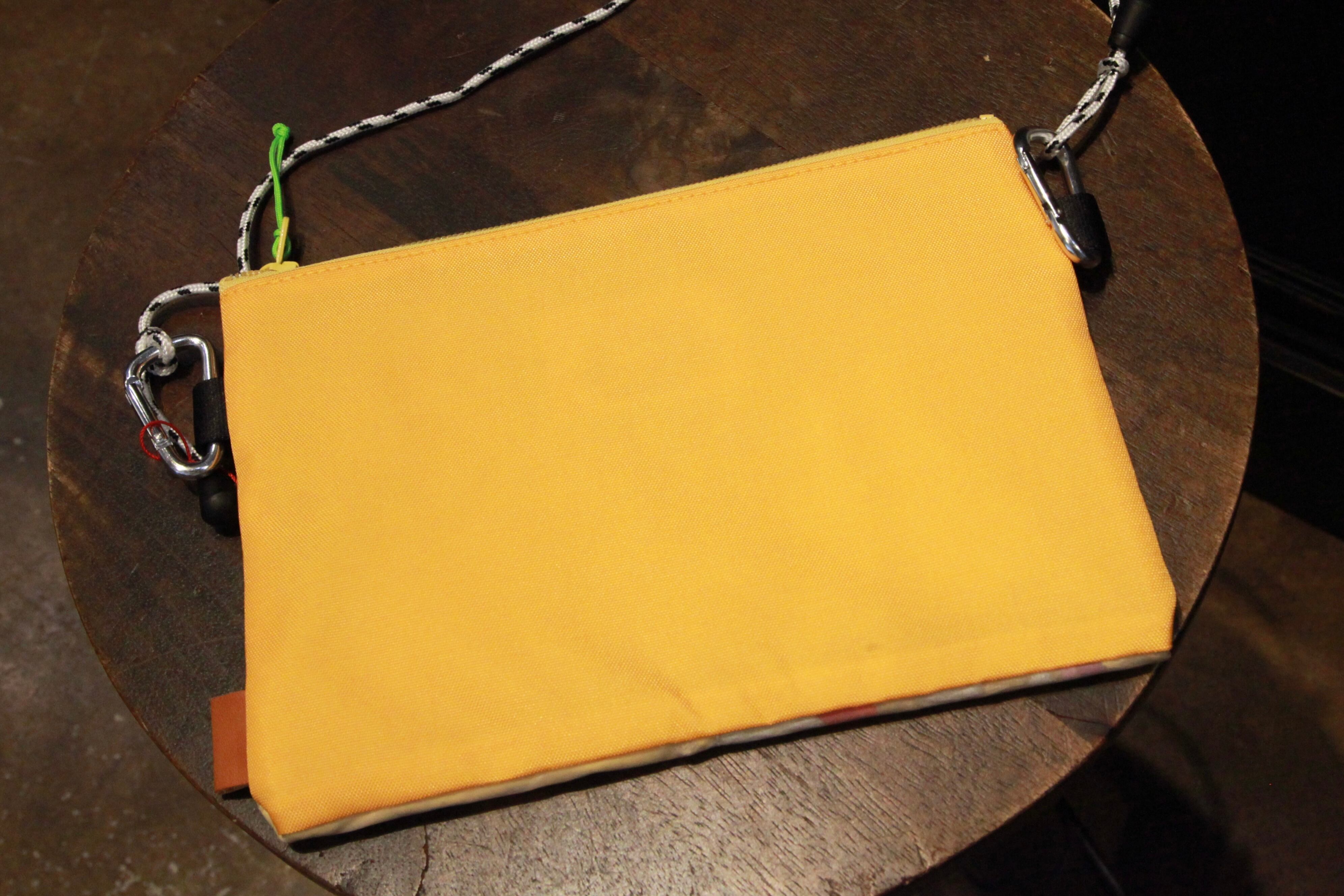 OBI sacoche is made by combination of modern sense and classic material. Used silk sash or antique sash is selected by designer and these classic fabric is mixed with nylon material. Translucent Cordura nylon is used as a material of front pocket, which also help to protect the silk fabric.