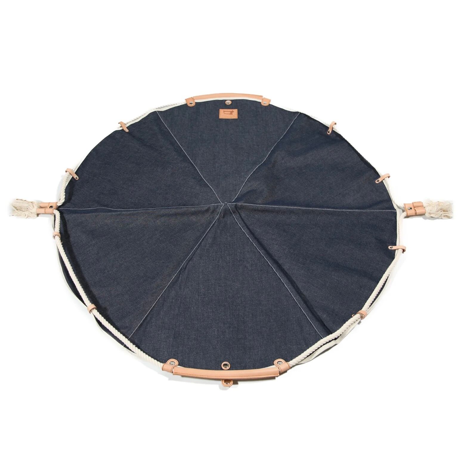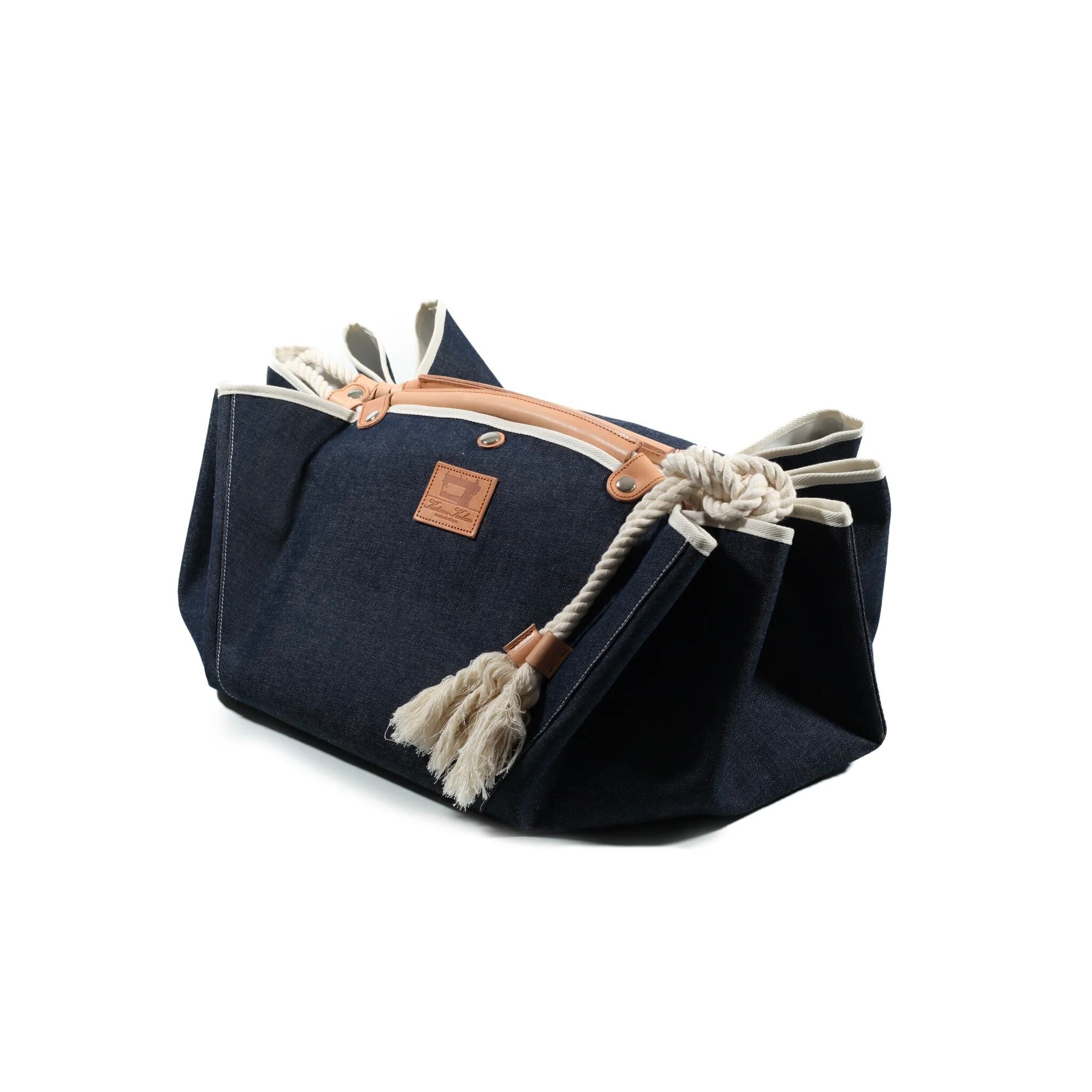 表地はデニム素材、内側は防水仕様のナイロン素材で、リバーシブルとしてお使い頂けます。