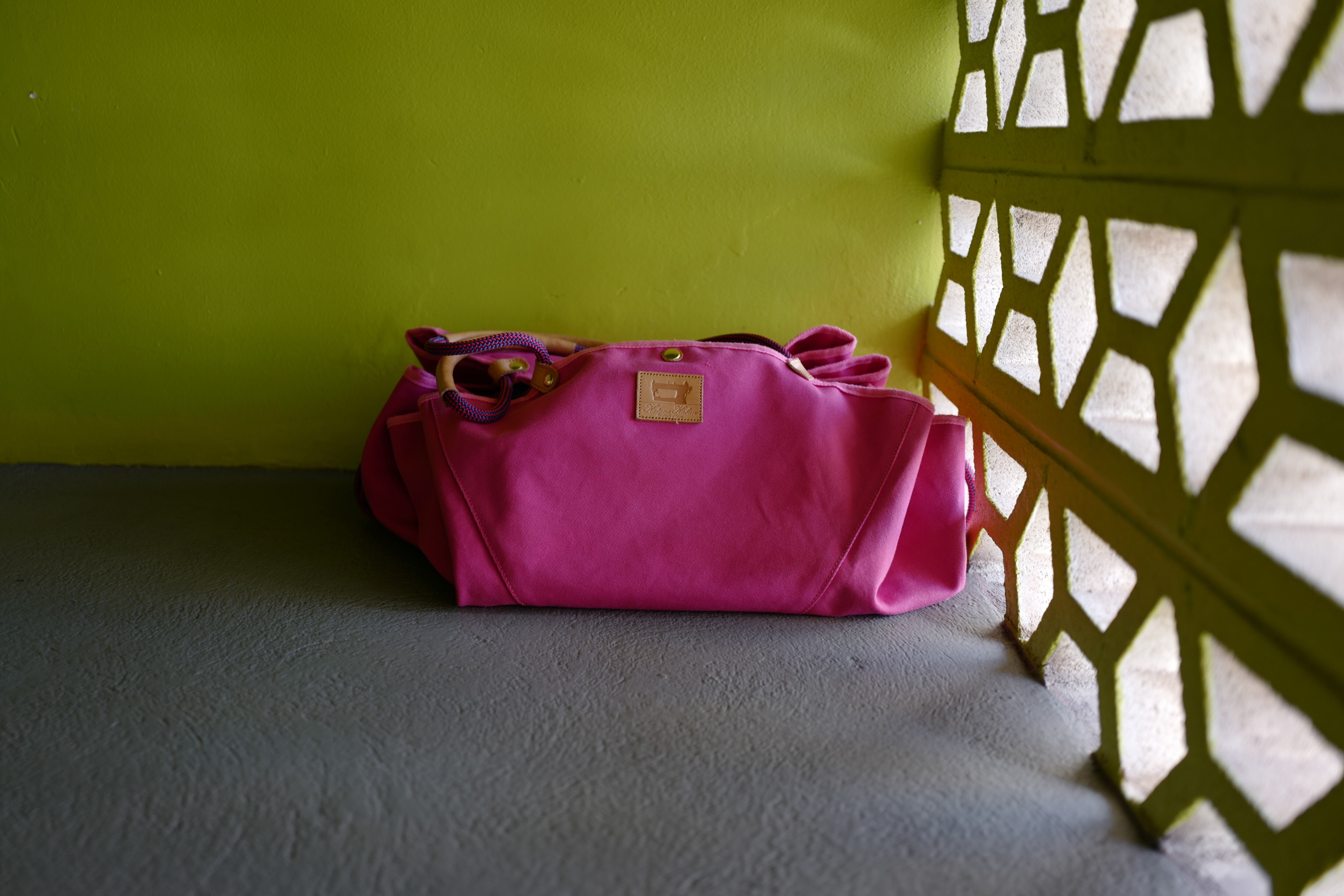 Crafted with a sturdy cotton canvas exterior and a waterproof nylon interior, this bag is reversible, so you can switch between textures and colors to match your mood or setting. The adjustable rope strap lets you wear it by hand, on the shoulder, or across the body—style it however you like.