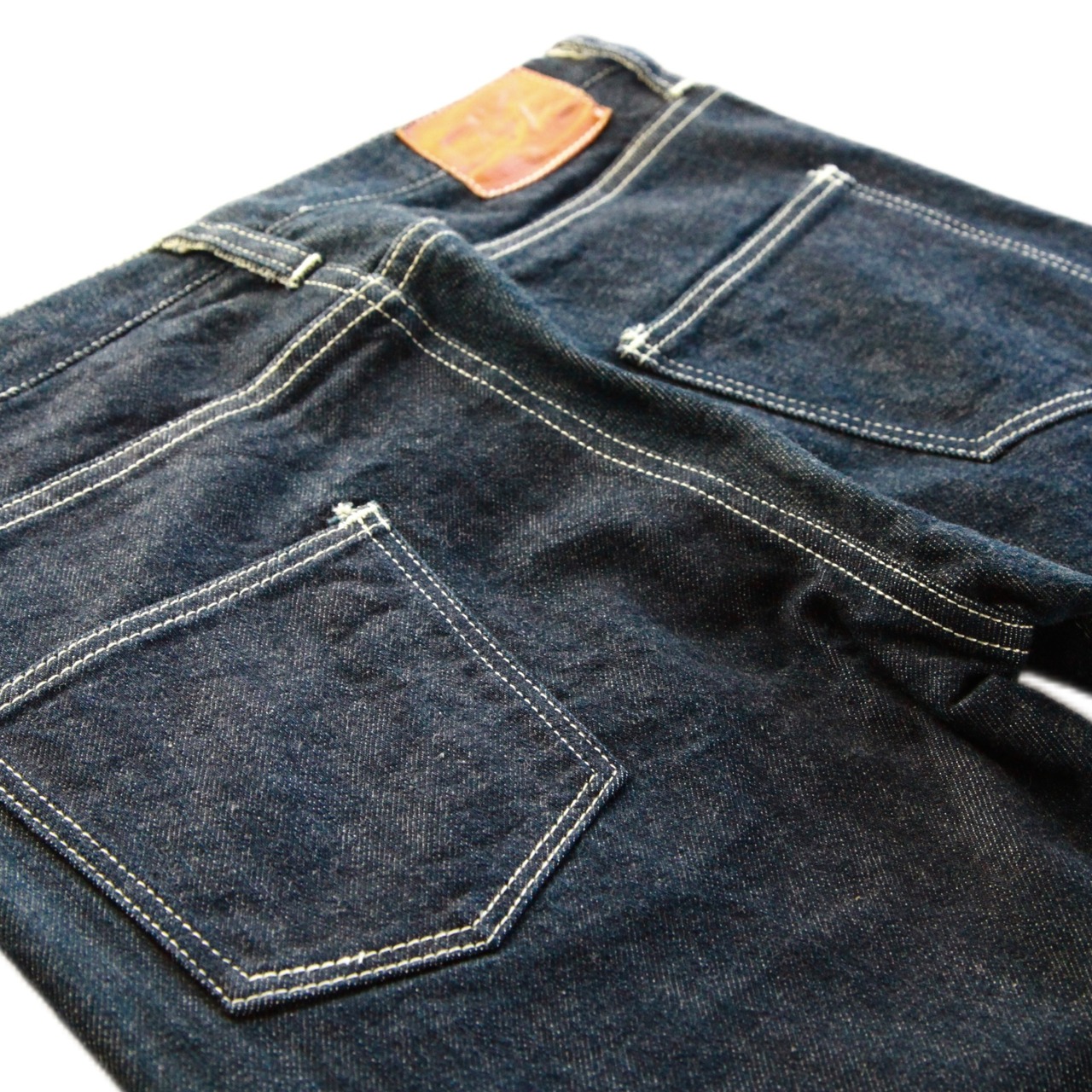 スーツパンツのようなディテールで、肉厚に織られたセルヴィッチデニムを使用しました。