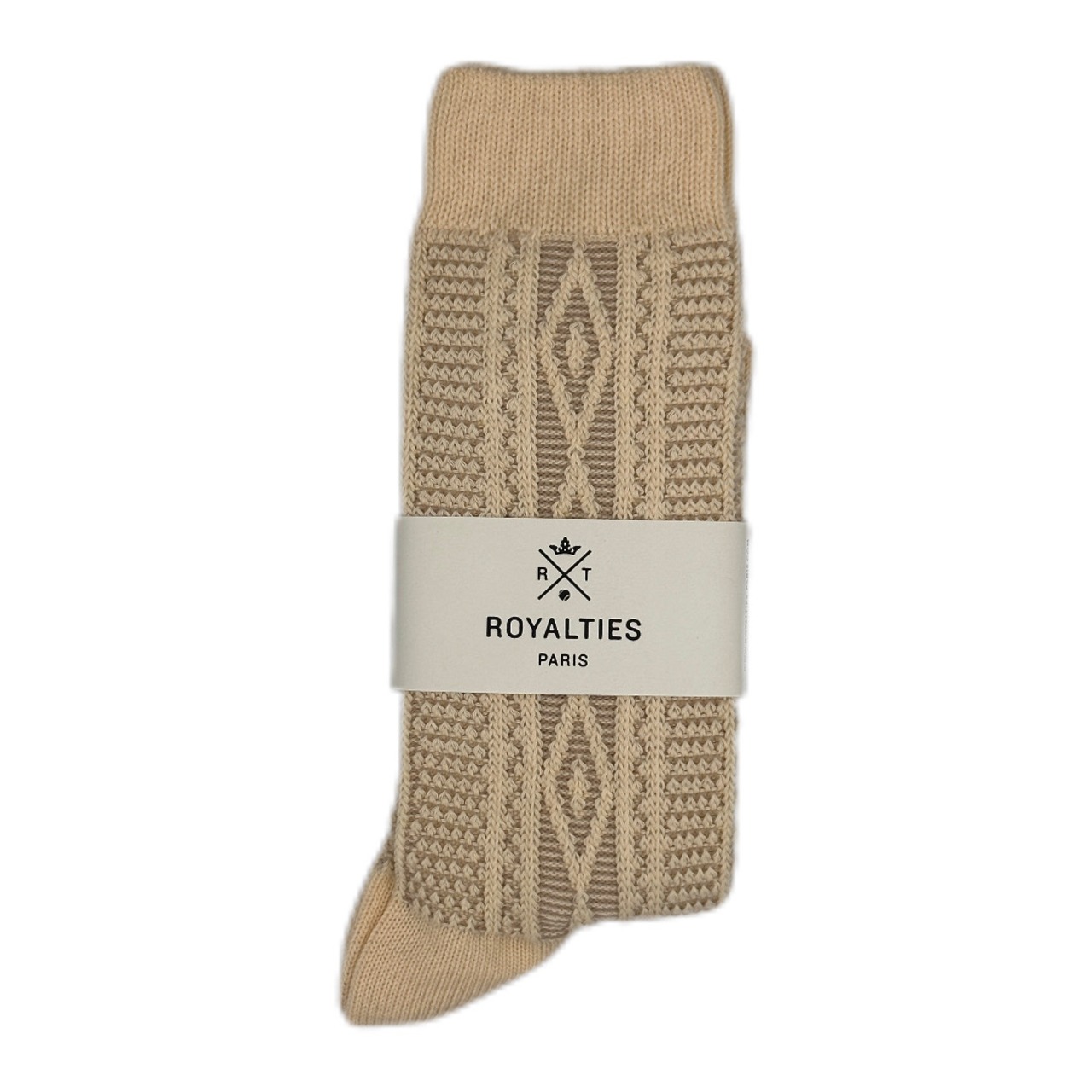 2011年、クリスチャン・ラクロワ出身のエマニュエル・プレスコフとティモシー・ピックにより設立された、ハイエンドでスタイリッシュなメイド・イン・フランスのソックスブランド。 ロイヤリティーズは、デザインだけではなくその品質や生産背景にも注力しています。ロイヤリティーズブランドの生産プロセスを十分に理解し、同じように情熱をもって取り組んでくれる、また、環境や品質基準に対する高い基準と知識を有する、メーカー(工場)にて生産を行っています。 高級素材のみを使用し、デザインにも徹底的にこだわったものづくりを続けています。100%仕上がりに満足するまでは、何度でもやり直しを行い、決して妥協はしません。シンプルなことですが、その妥協のないこだわりによって、履きごこちがよく、柔らかで、耐久性を兼ね備えたソックスが生み出されています。